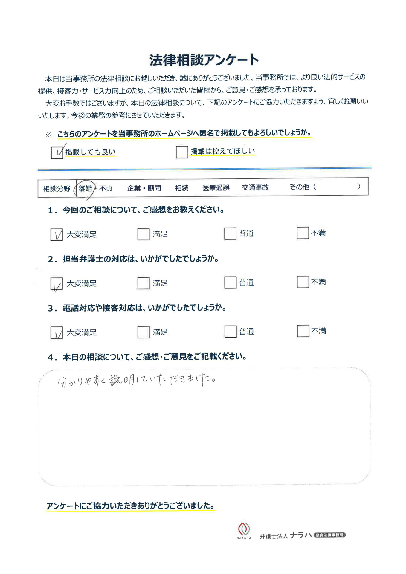 離婚相談に詳しい奈良の弁護士ならナラハ奈良法律事務所 TOP > お客様の声 > 「お客様の声」(116)