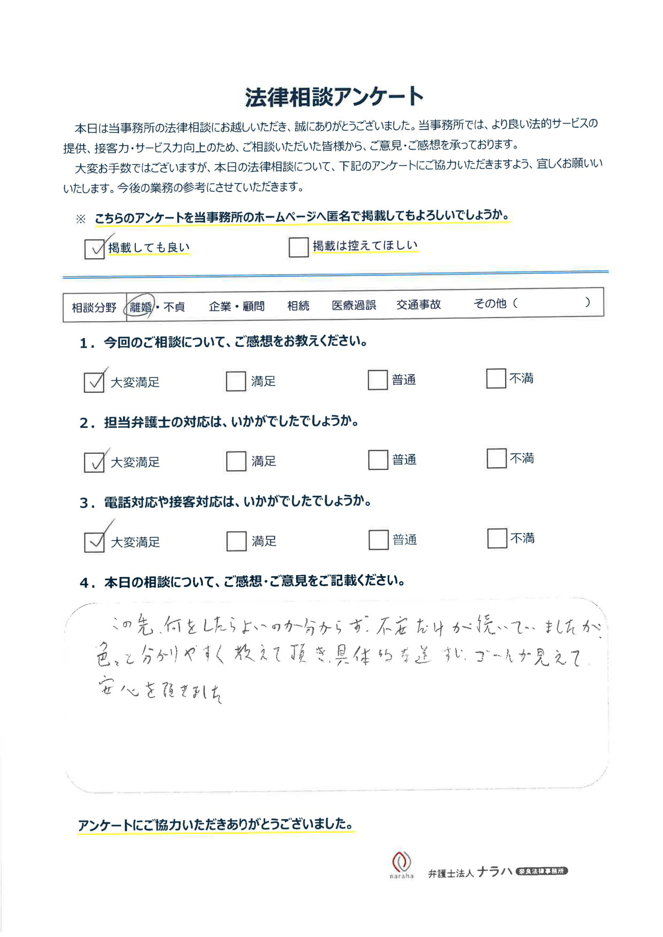離婚相談に詳しい奈良の弁護士ならナラハ奈良法律事務所 TOP > お客様の声 > 「お客様の声」(126)