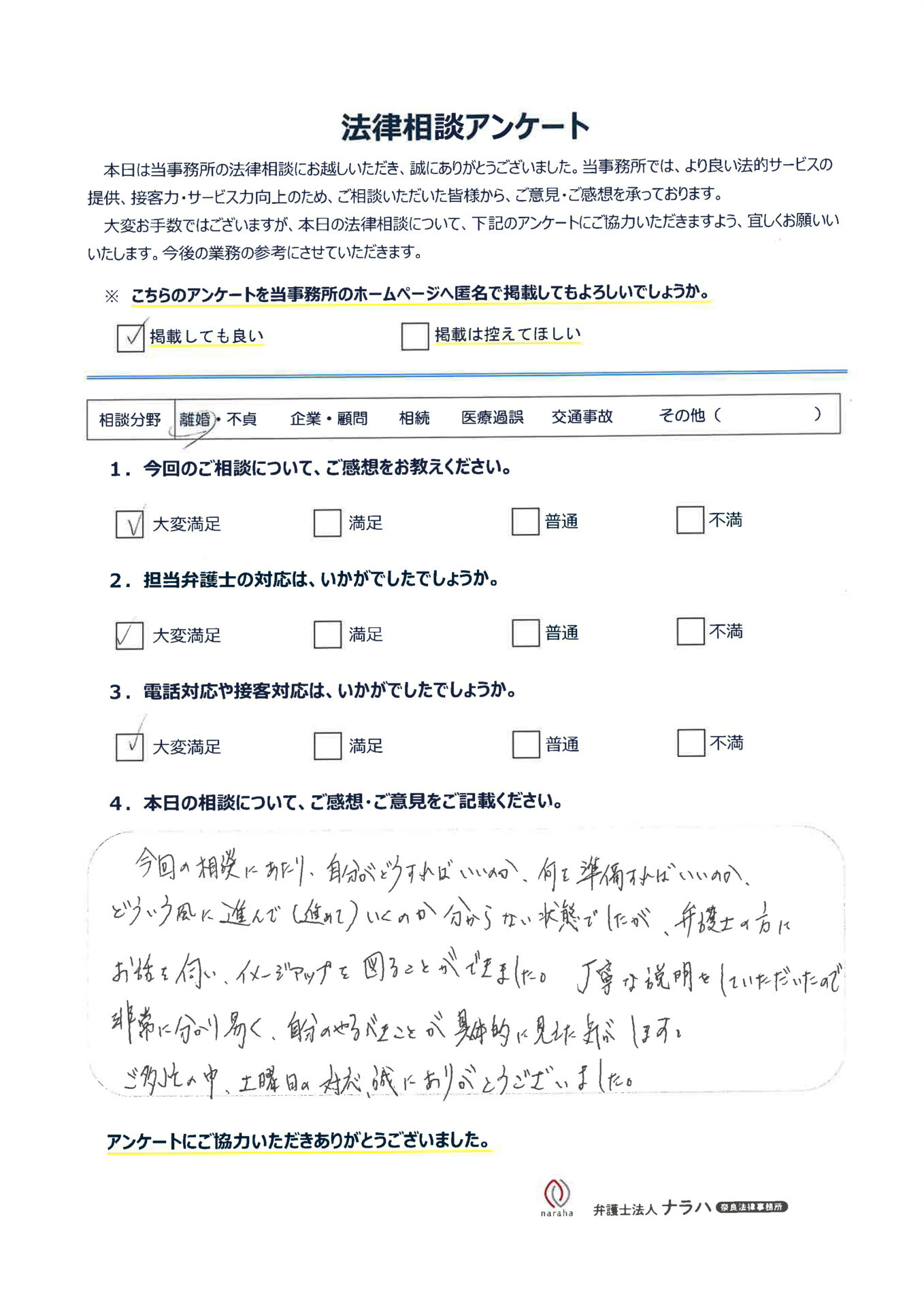 離婚相談に詳しい奈良の弁護士ならナラハ奈良法律事務所 TOP > お客様の声 > 「お客様の声」(127)